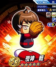 パワプロアプリでは昨年11月にゲノム大学附属高校のイベントキャラとして登場。容姿が一新されて明神の色違いのような見た目に。イベキャラでは開眼しているものの、ストーリー中では基本的に笑って糸目のようになっている。